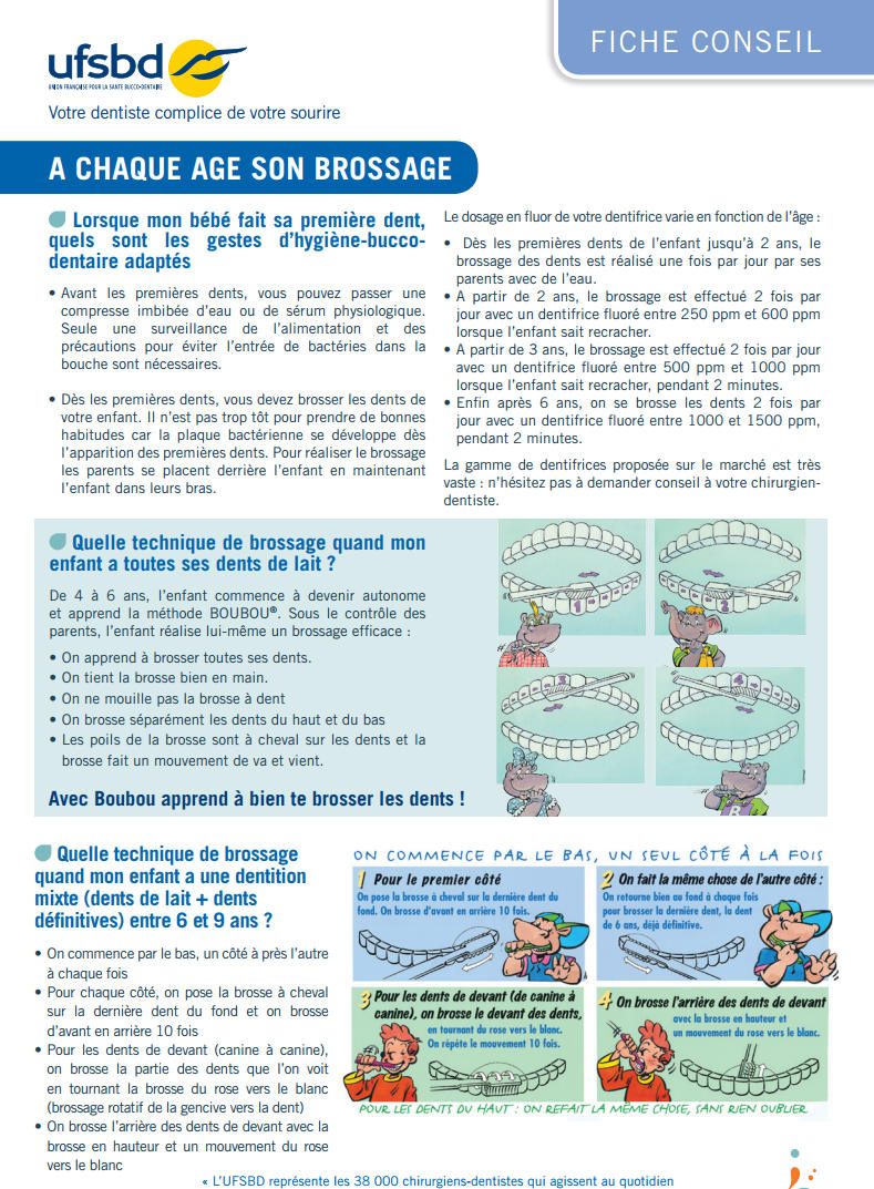 Télécharger la fiche d'information UFSBD sur le brossage des dents